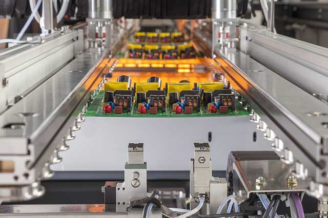 2、恒温区:恒温区继续对PCB和元器件进行预热,确保它们达到稳定状态,为进入回流区做准备。温度范围通常在150℃至200℃之间。