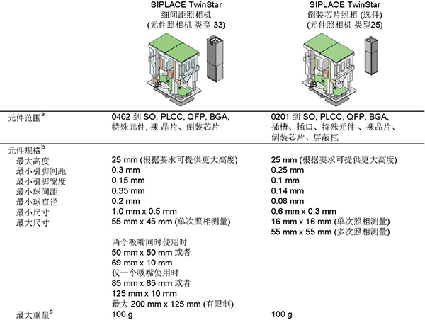 西门子贴片机ASM X2S-C配ASM SIPLACE TWIN贴装头支持0402到SO,PLCC,QFP,BGA,特殊元件,裸晶片、倒装芯片贴装。支持生产线尾部的大型和重型元器件贴装,还有异形元器件贴装。