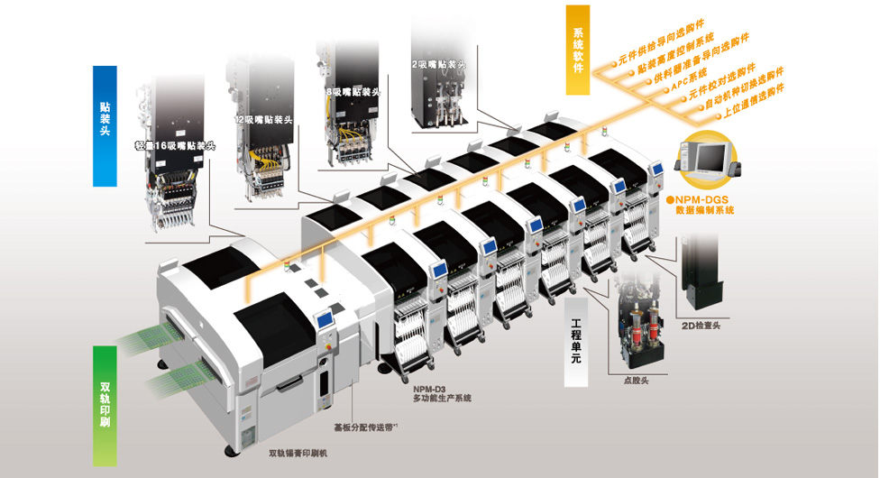 客户可以自由选择实装生产线通过即插即用功能,能够自由设置各工作头的位置;