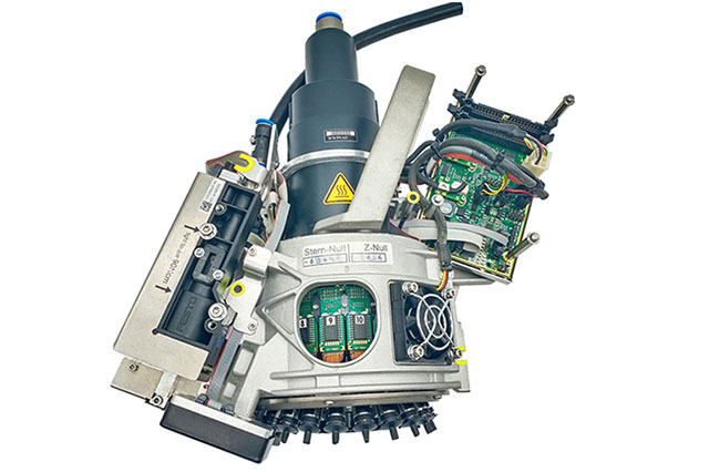 其次,ASM西门子贴片机C&P20将元件相机直接集成在贴片头内部。这一设计摒弃了传统设备需要将元件移动到固定外部相机进行识别的步骤,为每一颗元件都节省了宝贵的行程距离和时间。更值得一提的是,每一个独立的段位器都配备了专属的DP驱动装置,用于控制吸嘴的旋转。这意味着二十个吸嘴无需在拾取前预先对齐,它们可以在飞行过程中、在任何时间点,相互独立地旋转至目标角度,实现了无与伦比的灵活性与并行处理能力。
