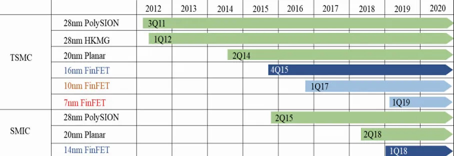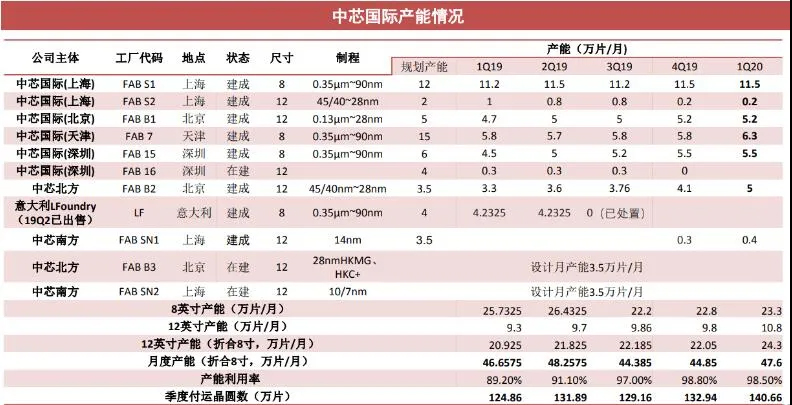 中芯国际14nm芯片试产良率为95%,中芯国际预计2020年3月底14nm产能建设目标为4千片/月,7月产能将达到9千片/月,年底12月达到1.5万片/月。业界预计2020年台积电上半年7nm产能为11万片/月,下半年为14万片/月。