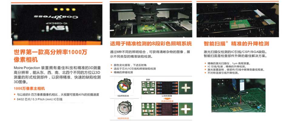 Ø 最小检查零件:9.8微米0402 /01005(inch)/0.3pitch mm